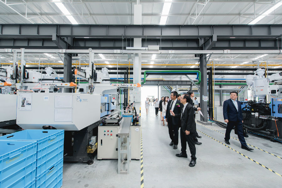 項(xiàng)目投產(chǎn)當(dāng)天,泰國春武里府潘通縣政府領(lǐng)導(dǎo),中國銀行、大金、東芝開利等國際戰(zhàn)略合作伙伴以及Amata工業(yè)園區(qū)執(zhí)行董事親臨慶典儀式現(xiàn)場,為項(xiàng)目落成剪彩。