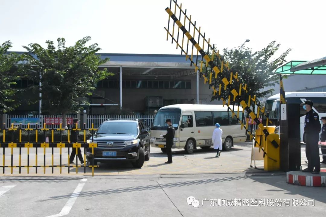 順威股份董事/總裁莫綺顏、董事/副總裁成再育、董事/副總裁/董事會秘書李笛鳴、工會主席/審計部總監童貴云、順德塑料分公司總經理范瑞強、順德模具分公司總經理龐利彬、集團戰略及商務中心/集團人力行政中心總監羅華、國內營銷中心總監助理/大客戶部高級經理王曉菲,一眾公司高管團隊在廠區廣場迎接中外媒體參觀團一行的到來。