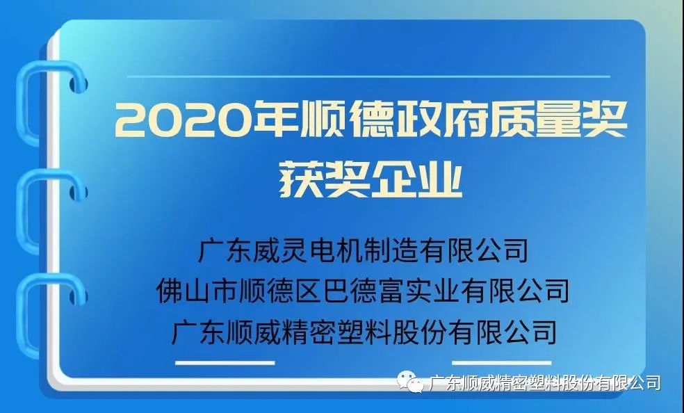 本次質(zhì)量獎自2020年5月26日至7月15日開始申報,經(jīng)過前期的資格審查、資料評審、現(xiàn)場評審等程序,并由順德政府質(zhì)量獎評審委員會審定,最終順威股份被確定為2020年順德政府質(zhì)量獎3家獲獎企業(yè)之一。
